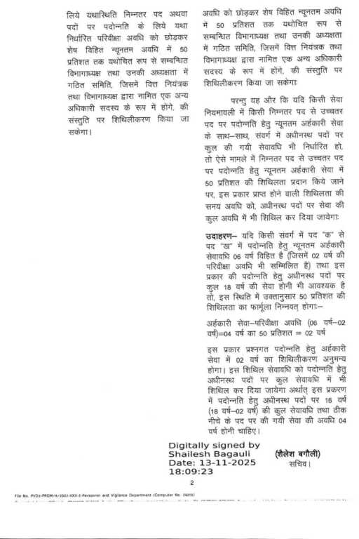 उत्तराखण्ड सरकारी सेवक पदोन्नति के लिए अर्हकारी सेवा में शिथिलीकरण (संशोधन)