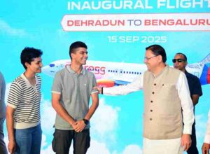 मुख्यमंत्री  पुष्कर सिंह धामी ने सोमवार को जौलीग्रांट एयरपोर्ट, देहरादून से एयर इंडिया एक्सप्रेस द्वारा देहरादून-बेंगलुरु के लिए शुरू की जा रही नई हवाई सेवा का विधिवत रूप से फ्लैग ऑफ किया। इस अवसर पर मुख्यमंत्री ने इसे राज्य के समग्र विकास और हवाई संपर्क विस्तार की दिशा में एक महत्वपूर्ण उपलब्धि बताया।