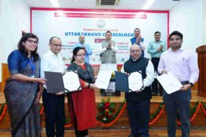 मुख्यमंत्री पुष्कर सिंह धामी ने बुधवार को मुख्यमंत्री आवास में उत्तराखण्ड सी.एस.आर. डायलॉग कार्यक्रम में प्रतिभाग किया। इस अवसर पर उन्होंने मुख्यमंत्री आदर्श ग्राम सारकोट के प्राथमिक विद्यालय में डिजिटल क्लासरूम का वर्चुअल शुभारंभ भी किया। कार्यक्रम में एक्सिस बैंक समूह के साथ राज्य के 24 विद्यालयों के डिजिटलाइजेशन के लिए तथा टोयटा के साथ पर्यावरण संरक्षण, शिक्षा, स्वास्थ्य एवं सामुदायिक सशक्तिकरण के क्षेत्र में सी.एस.आर. संचालित करने के लिए एमओयू किया गया।