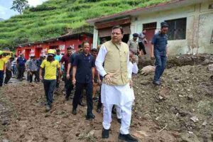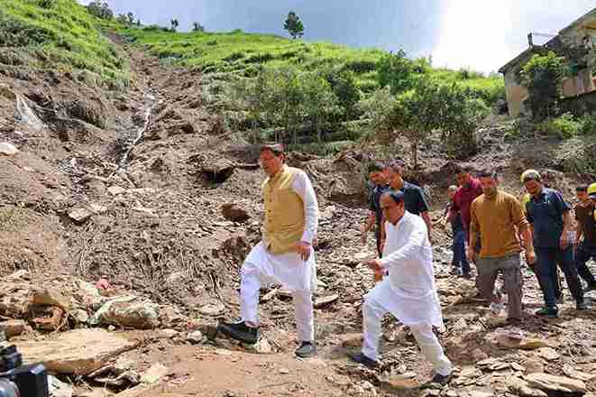 मुख्यमंत्री पुष्कर सिंह धामी ने गुरुवार को पौड़ी जनपद के आपदाग्रस्त क्षेत्र सैंजी का स्थलीय निरीक्षण किया। इस दौरान उन्होंने आपदा प्रभावित ग्रामीणों से उनका हालचाल जाना एवं आपदा से हुए नुकसान के बारे में जानकारी ली। उन्होंने प्रभावितों को आश्वस्त किया कि राज्य सरकार हर परिस्थिति में प्रभावितों के साथ खड़ी हैं। उन्होंने जिलाधिकारी को निर्देश दिये कि आपदा प्रभावितों को राहत पहुंचाने में किसी प्रकार की कमी न हो। इससे पूर्व उन्होंने हेलीकाप्टर से थलीसैंण तहसील के बांकुड़ा सहित अन्य आपदा प्रभावित क्षेत्रों का हवाई सर्वे भी किया।