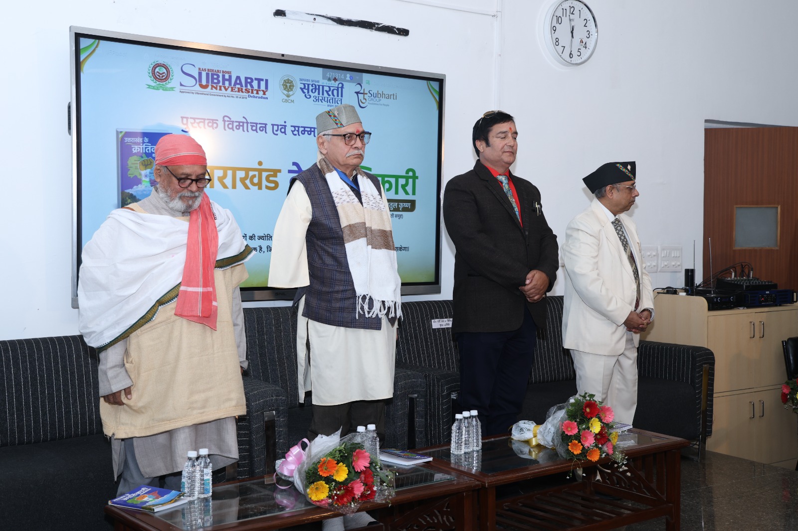 गौतम बुद्ध चिकित्सा महाविद्यालय एवं डॉ. के.के.बी.एम. सुभारती अस्पताल, झाझरा में रविवार को उत्तराखंड के गौरवशाली इतिहास और अनसुने वीरों को समर्पित पुस्तक “उत्तराखंड के क्रांतिकारी” का भव्य विमोचन समारोह अत्यंत गरिमापूर्ण वातावरण में आयोजित किया गया। इस पुस्तक के लेखक सुभारती समूह के संस्थापक डॉ. अतुल कृष्ण हैं । इस कार्यक्रम कि अध्यक्षता I.A.S. श्री दीपेन्द्र चौधरी-सचिव आयुष एवं आयुष शिक्षा द्वारा किया गया । कार्यक्रम के मुख्य अतिथि “देवज्ञ”, उत्तराखंड ज्योतिष रत्न एवं सहायक निदेशक (संस्कृत शिक्षा) उत्तराखंड सरकार, डॉ. चंडी प्रसाद घिल्डियाल रहे ।