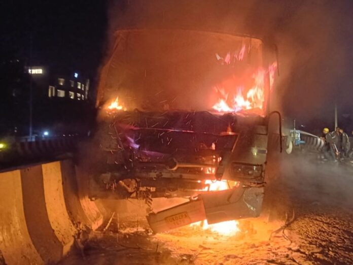 सूचना मिलते ही फायर ब्रिगेड और पुलिस टीम मौके पर पहुंची और आग पर काबू पाने का प्रयास किया। इस दौरान हाईवे पर जाम लग गया