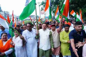 - सीएम धामी ने देहरादून में जनप्रतिनिधियों, हजारों की संख्या में युवाओं, छात्र-छात्राओं, महिलाओं एवं बच्चों के साथ तिरंगा यात्रा का नेतृत्व किया