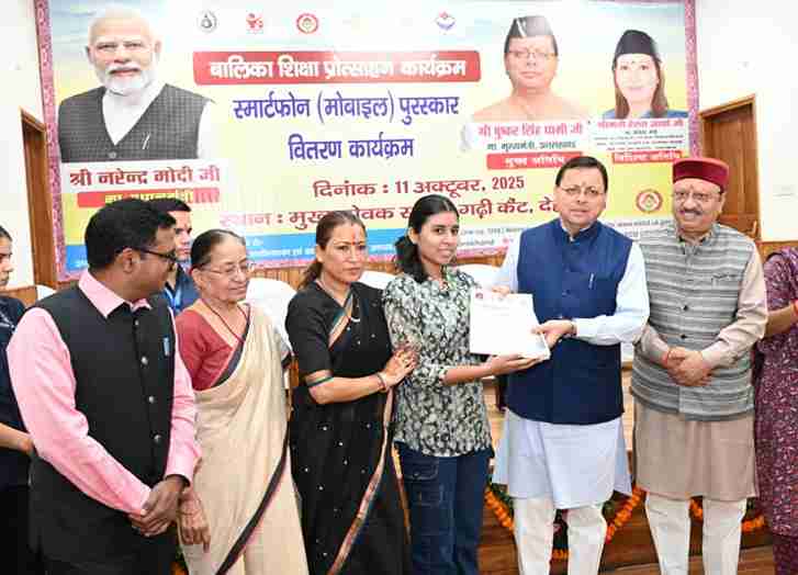 मुख्यमंत्री पुष्कर सिंह धामी ने शनिवार को मुख्यमंत्री कैम्प कार्यालय स्थित मुख्य सेवक सदन में अंतरराष्ट्रीय बालिका दिवस के अवसर पर आयोजित बालिका शिक्षा प्रोत्साहन कार्यक्रम में प्रतिभाग किया। महिला सशक्तिकरण एवं बाल विकास विभाग द्वारा आयोजित इस कार्यक्रम में 326 मेधावी बालिकाओं को स्मार्टफोन प्रदान किए गए। जनपद स्तर पर हाईस्कूल एवं इंटरमीडिएट की परीक्षा के प्रथम तीन टॉपर बालिकाओं एवं विकासखण्ड स्तर पर टॉपर बालिकाओं को मुख्यमंत्री द्वारा पुरस्कृत किया गया।