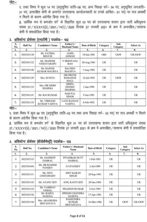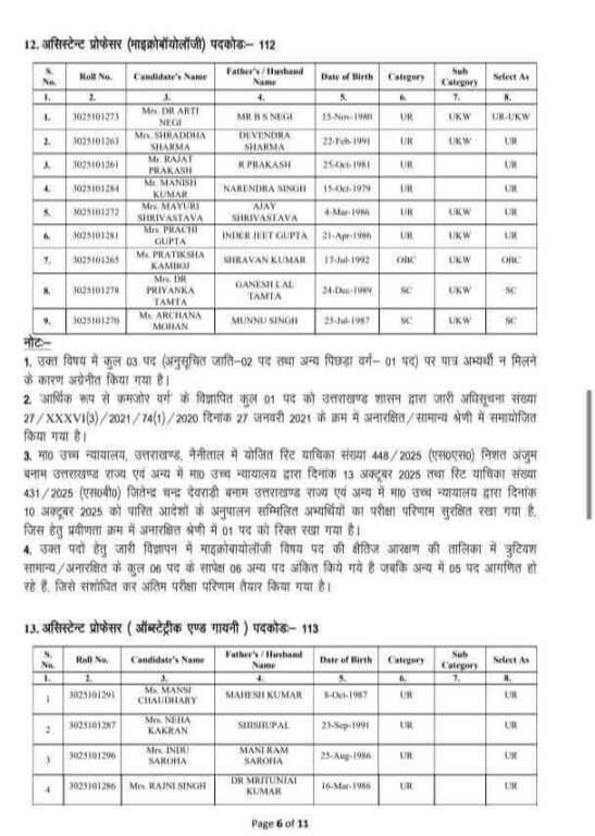 चिकित्सा शिक्षा विभाग के अंतर्गत राजकीय मेडिकल कॉलेजों में असिस्टेंट प्रोफेसर के रिक्त 439 पदों पर आयोजित सीधी भर्ती परीक्षा का परिणाम उत्तराखंड चिकित्सा सेवा चयन बोर्ड द्वारा घोषित कर दिया गया है।